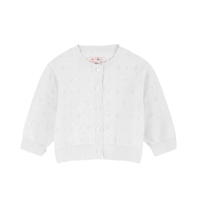 Βρεφική Ανοιξιάτικη / Φθινοπωρινή πλεκτή βαμβακερή ζακέτα για κορίτσι με τρυπητό σχέδιο και κούμπωμα με κουμπάκια.